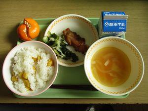 今日は「おいC~たのC~ビタミンCたっぷり献立」でした。今回の献立は6年3組の1班の皆さんが考えたものです。メニューは「栗ご飯・牛乳・鳥の照り焼き・わかめときゅうりのサラダ・コンソメスープ・みかん」でした。おいしく味わえる味の組み合わせ・楽しくなるような料理の多さ・ビタミンCをとるための食材などたくさんの考えが盛り込まれた献立でした。給食室の先生方は料理の多さにてんてこ舞いしながらも,衛生管理をしっかりしながら作業してくださったそうです。来週も6年生が考えた献立が登場する予定です。お楽しみに!!