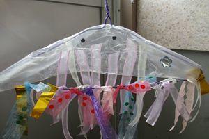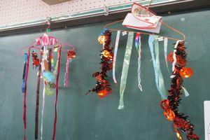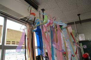 今日の図画工作科では,風にゆれる楽しい飾りを作りました。紙テープやすずらんテープ,折り紙などを使って色や形,長さを工夫しながら作りました。材料を準備いただきありがとうございました。
