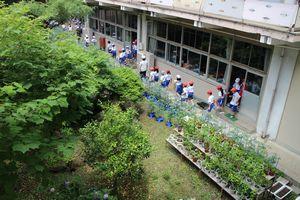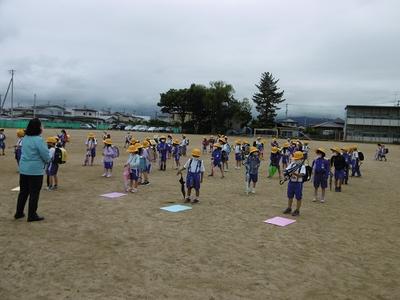 1年生は、同じ方向に下校する児童は、集団できちんと並んで下校します。距離を離れて、まっすぐ上手に並べるようになりました。