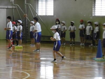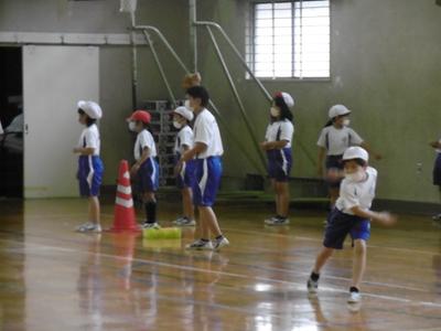 2020年7月9日 07時54分業間の時間を活用し児童会運動委員会の子どもたちが企画した「ボール投げがんばりデー」が1,2年生を対象に体育館で行われています。5,6年の運動委員会のお兄さん、お姉さんに教えてもらいながら,目標地点を目指して一生懸命投げていました。なお,目標地点に達成した1,2年生には運動委員会から後日合格証がもらえます。