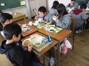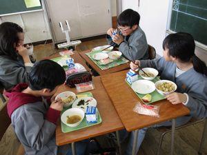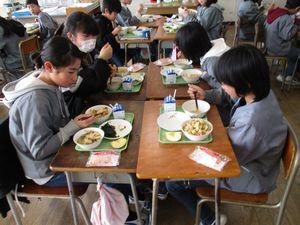 今日も給食は「卒業おめでとうリクエスト献立」です。気になるメニューは「栗五目御飯・牛乳・わかめサラダ・リンゴ・ワンタンスープ・桃のクレープケーキ」でした。今年度の給食の最後でした。サプライズで「ケーキ付」ということで,子どもたちは大喜びでした。1年間美味しい給食を作ってくださった給食室の先生方,ありがとうございました!