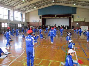 2月4日(火)5校時目に4年生のなわとび記録会が実施されました。この日まで体育の時間や休み時間を使って,子どもたちは一生懸命に練習してきました。4分間持久跳び・種目跳び・2重跳びリレー・長縄跳びの4つの競技が行われました。多くの保護者の方々の応援で練習以上の成果を出すことができました。チームワークを高めるため,長縄跳びはクラスで継続して活動していきたいと思います。