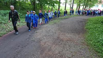 かたらいの丘まで全員で行った後 班ごとに自然の家に戻ってきました