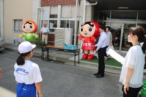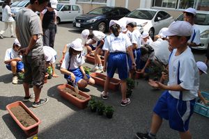 本日昼休み、人権啓発ネットワーク協議会の方々が来校し、”人権の花”贈呈式を実施しました。花を育てることを通して互いを思いやったり、豊かな情操を育んだりすることを目的として実施されました。児童を代表して、栽培委員会の5・6年生が参加して、マリーゴールド、千日紅、サルビアの苗をいただき、プランターに植樹しました。児童昇降口できれいな花をたくさん咲かせてほしいものです。