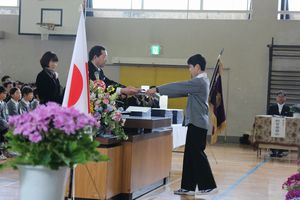 本日平成29年度の卒業証書授与式を実施しました。心配された天気でしたが、さわやか春の日差しのもとで実施することができました。卒業生80名は担任の呼名で大きな返事をし、校長先生から一人ひとり卒業証書をいただきました。6年間の思いがこもった立派な態度の卒業生、成長した姿をお父さんお母さんに見ていただき、感謝の思いもきっと伝わったことでしょう。式では涙を見せることがなかった卒業生も、教室に戻った後の担任との最後の別れでは熱い思いがこみ上げて涙する姿が見られました。瀬上小で学んだことを生かして、自分の夢に向かって道を切り拓いていってほしいものです。