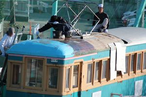 2018年3月27日 11時06分瀬上小学校のシンボルである”チンチン電車”を現在修理中です。校庭に設置されてから長い年月がたち、いたみが目立つようになってきました。このままではどんどん壊れていくことから、長く保存するために修理をすることにしました。ドアを直したり、屋根の部分を直したりしています。今の姿を維持しつつ、瀬上地区のシンボルとしても長く後世に伝えることができるように守っていきたいものです。