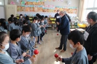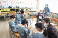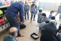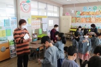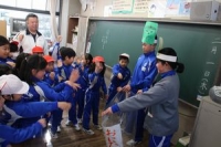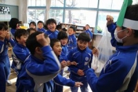 2018年2月1日 13時23分 本日昼休み、児童会運営集会委員会の企画で”なまはげ大会”を実施しました。一人ひとり退治したい心の鬼を紙に書いて、運営集会委員会の児童のかけ声で退治したい心の鬼を書いた紙を丸め、”おにたいじぶくろ”に投げ入れて退治しました。泣き虫鬼、忘れんぼ鬼、好き嫌い鬼、怠け者鬼、・・・「油断するとすぐに鬼が復活するので、気を引きしめて生活しましょう。」のなまはげの呼びかけに、子どもたちは元気に「はい」と返事していました。運営集会委員会のみなさんのアイデアで楽しく鬼退治をすることができました。