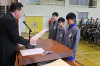 本日アップルタイムで全校集会を実施しました。夏休みから2学期にかけて実施された各種コンクールや陸上大会で入賞した児童の賞状を全校生に披露しました。中でも小学校体育大会陸上競技大会の男子400mリレーは昨年度に続き1位に輝き、2連覇を果たしました。地区音楽祭で奨励賞を受賞した特設音楽部のほか、理科作品展や作文コンクール、読書感想文コンクールなどで18人が校長先生から賞状を授与されました。