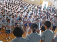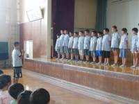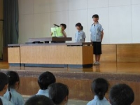 2017年7月20日 11時56分 本日4校時、第1学期終業式を実施しました。校長先生からは、”夏休みは自分が先生”、”よく学びよく遊べ!”、”命はひとつ、命を大切に”の3つのお話をお聞きした後、今日で本校での勤務が終了する特別支援教育協力員の奥津先生からお別れの言葉をお聞きしました。次に1年と3年と5年の代表児童が1学期の反省と夏休みの計画について発表しました。いよいよ明日から夏休み、長期の休みにしかできないことにチャレンジして楽しい思い出をいっぱい作ってほしいものです。