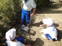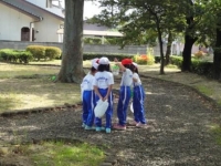 本日2~3校時に、1年生は生活科「あきとなかよし」の学習で桜町公園に行ってきました。天気にも恵まれ、さわやかな秋晴れの下、思い思いに秋探しをしました。コオロギやバッタなどの虫を見つけたり、赤や黄色に紅葉した落ち葉を拾ったり、いろいろな”あき”を見つけることができました。公園に行く途中、黄色に紅葉したイチョウの落ち葉を見つけた子もいました。秋探しが終わった後、公園の遊具でみんなで楽しく遊び、学校に戻りました。