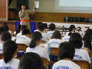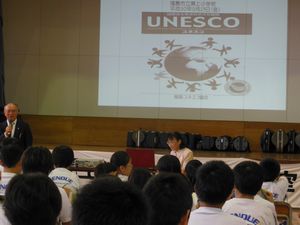 2018年9月21日 12時34分本日3・4校時5年生は福島ユネスコ協会の方々をお招きして、子どもユネスコ教室を実施しました。はじめに、ユネスコ協会の方からユネスコについての話を聞きました。誕生の歴史や願い、主な仕事などを教えていただきました。そのあと、現在福島大学理工学部で学んでいるモンゴル出身のアナラさんから、モンゴルの国の紹介や正月などの伝統行事、学校での勉強の様子や家庭料理など日本とは違う文化について紹介していただきました。とくに、相手の足を踏んだり踏まれたりした時に知らない人同士でも”ごめんね””いいよ”の気持ちを伝えるために握手する文化があることに子どもたちはびっくりしていました。外国の文化を体験して自分にできることを考えるきっかけになったことでしょう。
