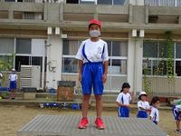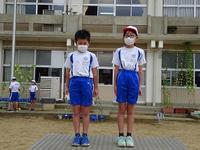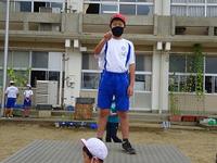 2020年9月14日 13時36分昼休みに運動会の開会式,閉会式等の練習を校庭で行いました。開会式の開式の言葉の2年生,閉式の言葉の3年生,ラジオ体操の指揮をする運動委員会委員長,閉会式の開会の言葉の4年生,校歌の指揮をする6年生,閉会の言葉の5年生の代表児童が,返事から式台への上がり方と降り方の一連の練習をしました。