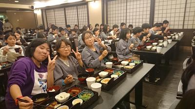 全員元気で宿に入りおいしい夕食をいただきました。何人もおかわりのご飯をいただいていました❗