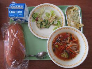 2021年3月11日 15時50分11日(木)は「おいしく健康によいごはんわ食べよう献立でした。メニューは,「コッペパン・牛乳・ツナサラダ・マカロニグラタン・ポークビーンズ」でした。6年2組の5班さんが家庭科の時間に考えてくれた献立です。健康ということで豆の種類や野菜の数を多く入れてくれました。豆は体を作るもとになり,野菜は体の調子をよくするもとになります。豆を苦手とするお子さんが多く,豆を使った献立の時は残菜が多くなります。しかし,今回は6年生が考えてくれた献立ということで,残菜はほとんどなかったそうです。「自分で考えた献立」「先輩が考えてくれた献立」という意識が高かったのでしょう。今日で6年生が考えた献立はおしまいです。家庭科の学習で学んだことをもとに給食の献立を考えてくれた6年生の皆さん,ありがとうございました。