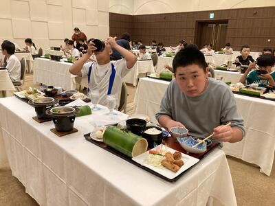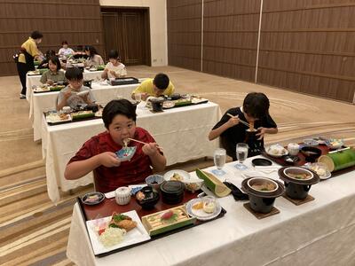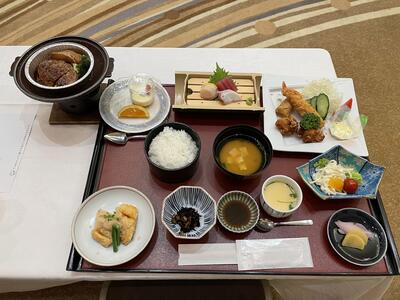 ついて荷解きが済むと、早速夕食です。豪華なお食事を、美味しくいただきました。