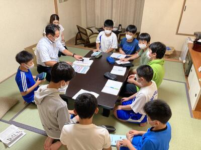 お風呂の後は部屋長・班長会議です。館内での約束や、明日のフィールドワークに向けた確認をしっかりとしておりました。