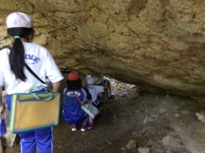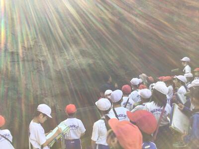 その後、「鼻毛の隧道(ずいどう)」と呼ばれる隧道を見学し、西根神社でお弁当タイム!!おうちの方の愛情たっぷりお弁当をあっという間に食べ終えて、神社をお参りしていました。