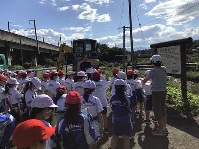 本日晴天に恵まれ、1日かけて西根堰を見学してきました。社会科での学習が始まった西根堰。摺上川から水を取り入れて堰へ流すのですが、まずはスタート地点の上堰頭首工から見学しました。頭首工では、水の流れの速さと透明感に驚いていました。頭首工近くの森林からも美しい湧き水が流れており、子どもたちが興味津々だったので、森林は水をためておくダムの役割をしていること、森林によって水がきれいになっていることを話しました。