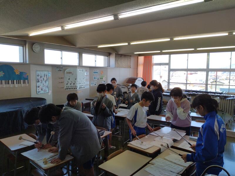 今日の午後には、6年生が5年生に経験を伝えながら、パートごとに練習する姿が見られました