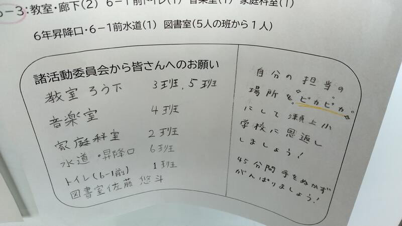45分間、休まずに一生懸命お掃除にがんばった6年生の気持ちがとてもうれしかったです