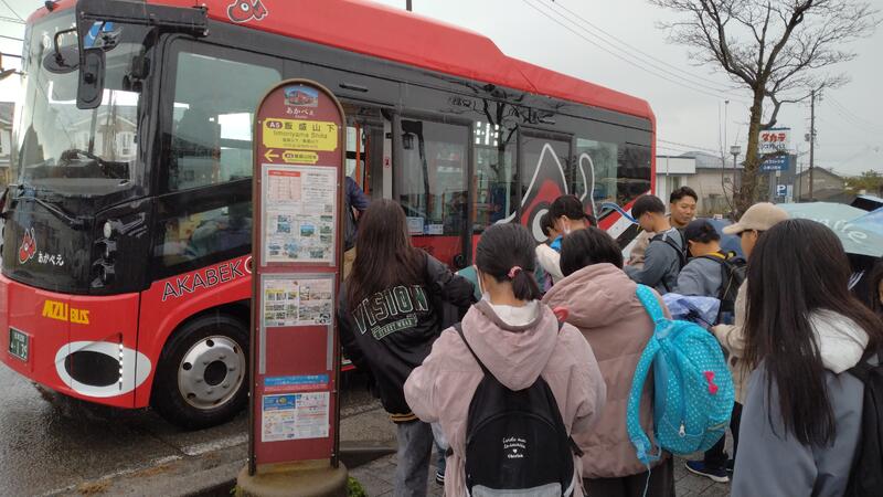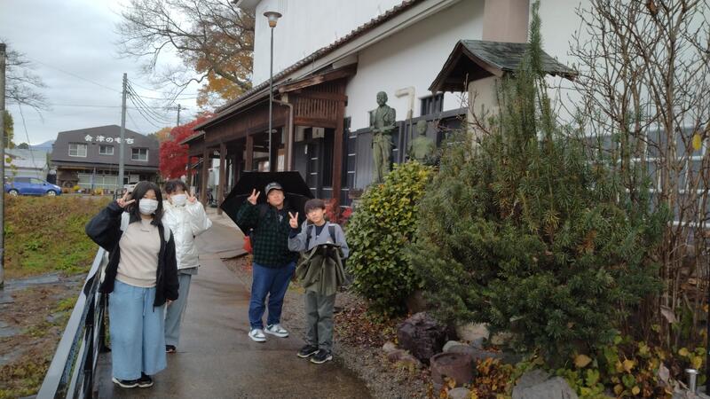 修学旅行⑩ 2024年11月22日 10時00分 今日の出来事 今日の会津はあいにくの雨模様でも、子どもたちは元気に会津フィールドワークに出発写真は飯盛山方面で活動中の子どもたちですバスに乗って次の目的地に移動します