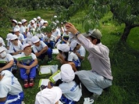 2017年10月3日 13時27分 本日3、4校時に3年生がりんご園見学に行きました。前回の9月にはりんごを赤くおいしくするための反射シートを敷く作業ついて学習しました。りんご農園には赤く色づいたりんごがいっぱい実っていました。今回はいよいよ収穫です。りんご農園の阿部先生からりんごの採り方を教えてもらいました。摘果作業のときはあんなに小さかったりんごが大きくおいしそうに実っていて、これまでの作業の大変さや苦労を振り返ることができました。瀬上町はこんなりんご畑がたくさんあって、素敵な町だなと感じることができました。