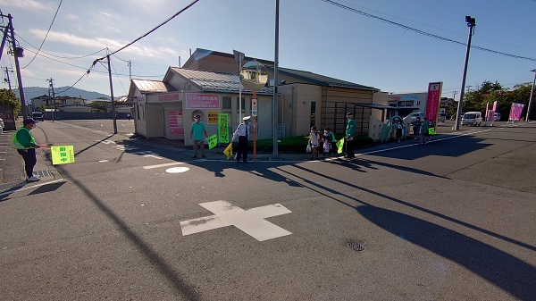 9月21日(火)、FIT365福島泉(旧JOYFIT24)前、清水中学校前で秋の交通安全運動が行われました。日ごろから小学生も中学生もしっかり交通ルールを守って登下校しているものと思いますが、特に清水中、清水小学区は狭くて見通しの悪いところがあり、急な飛び出しや道いっぱいに広がっての通行など十分注意したいものです。