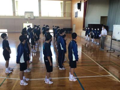 新型コロナウイルス感染症まん延防止特別措置適用により、中体連新人大会が10月7日に延期されたことに伴い、選手壮行会も10月1日に延期になりました。