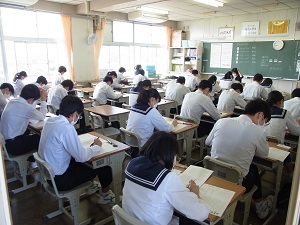 9月27日(月)、「心の健康に関する調査」を全校で行いました。これは、東日本大震災後の児童生徒の心の状態を分析し、今後のサポートや生活指導の資料とするもので、平成24年度から中京大学が主体となって実施しています。以前は調査用紙に書き込んでいましたが、今回はオンラインで調査することとなりました。