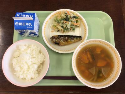 9月7日(火)の給食は、「いわき市の献立」で、ごはん、やぶさめ汁、いわしの生姜煮、わさびマヨあえ、牛乳でした。