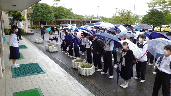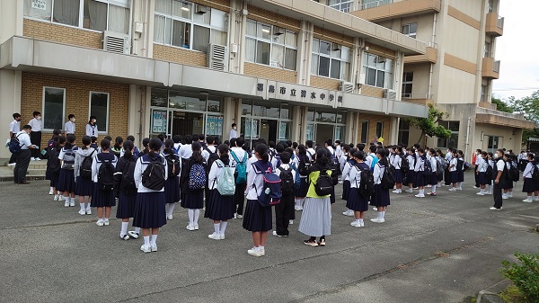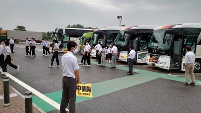 9月8日(水)、わずかに雨が降っている中、1年生、2年生が見学学習に出発しました。