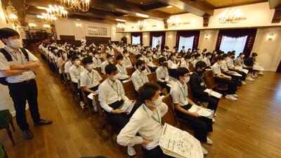 9月8日(水)に行われる2年見学学習を前に、本日9月6日(月)午後、結団式が行われました。行先は会津方面で午前中は飯盛山と県立博物館をクラスで分けて見学、お昼は天鏡台で昼食(弁当)を食べ、午後は磐梯山噴火記念館、3Dワールドを見学してきます。
