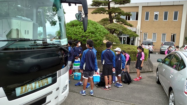 7月16日(金)、中体連県大会2日目剣道部男子、いわき市総合体育館へ向けて出発です。