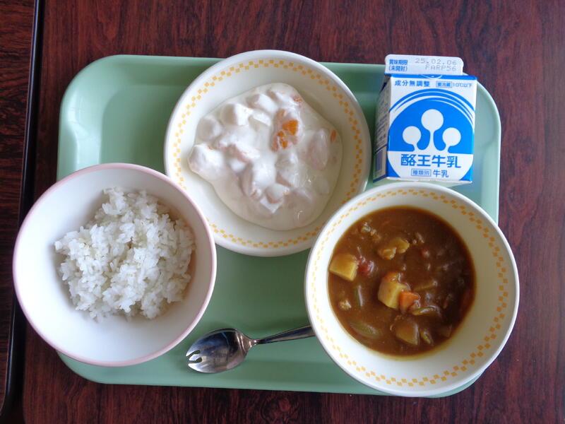 【全国学校給食週間】~楽しい食事~ 2025年1月27日 13時01分 「麦ごはん、牛乳、ポークカレー、フルーツヨーグルト和え」というラインナップ。「食事は単に空腹を満たすためだけにあるのではありません。家族や仲間と一緒に安心して楽しく食べることは、私たちの心を豊かにします。心と体を活動できる状態にし、もてる力を十分に発揮できるようにするためにも、食事の喜びや楽しさを大切にしましょう。」(「西部学校給食センターからこんにちは」より)それでは、楽しくいただきます!