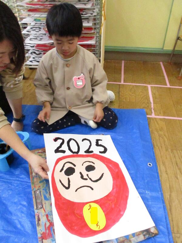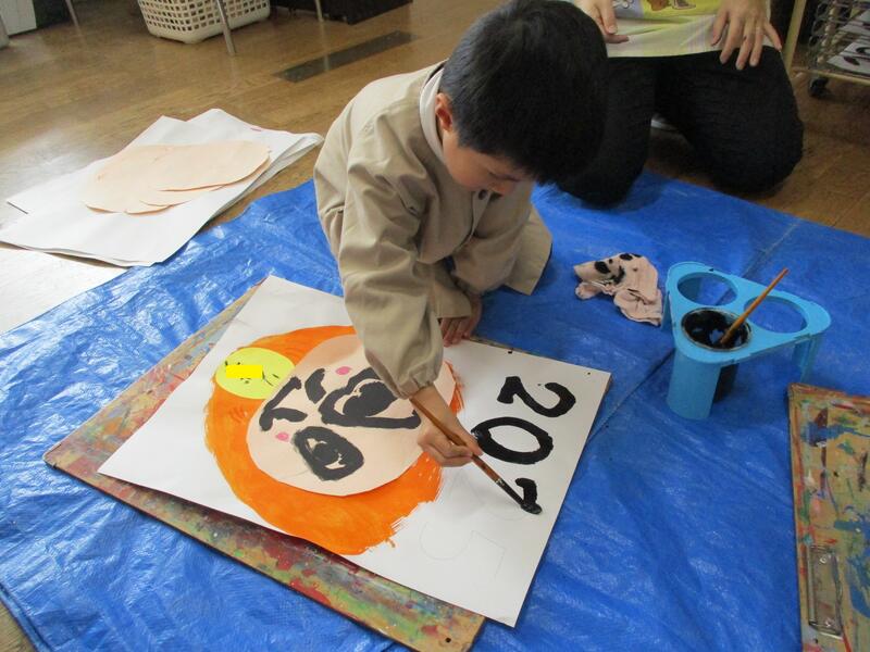 10日(金)の続きです。顔を貼り、2025を筆で書いて完成です。
