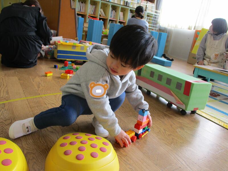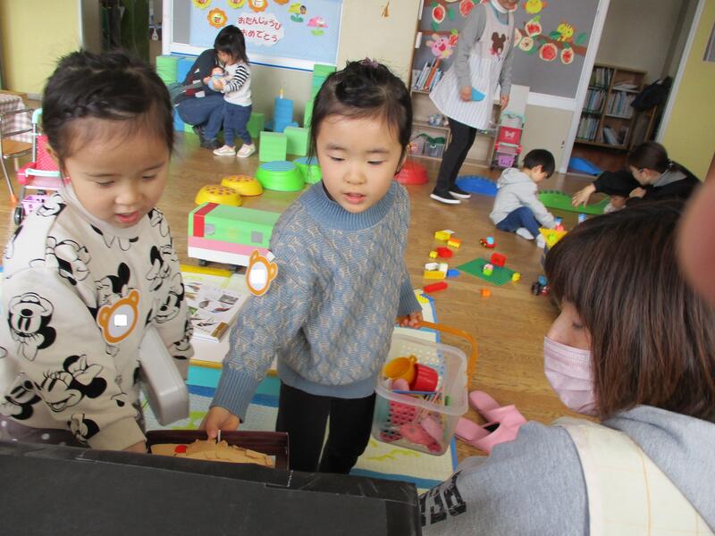 今日は、毎週火曜日に実施している「未就園児預かり保育(3歳児)」の日です。6人の子どもたちが集まって楽しく遊びました。