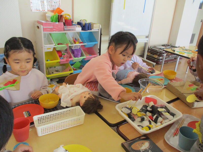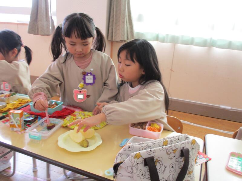 今日は、毎週火曜日に実施している3歳児預かり保育の日でした。友達とのかかわりもたくさん見られ楽しく過ごしていました。お弁当もみんなで仲良く食べていました。