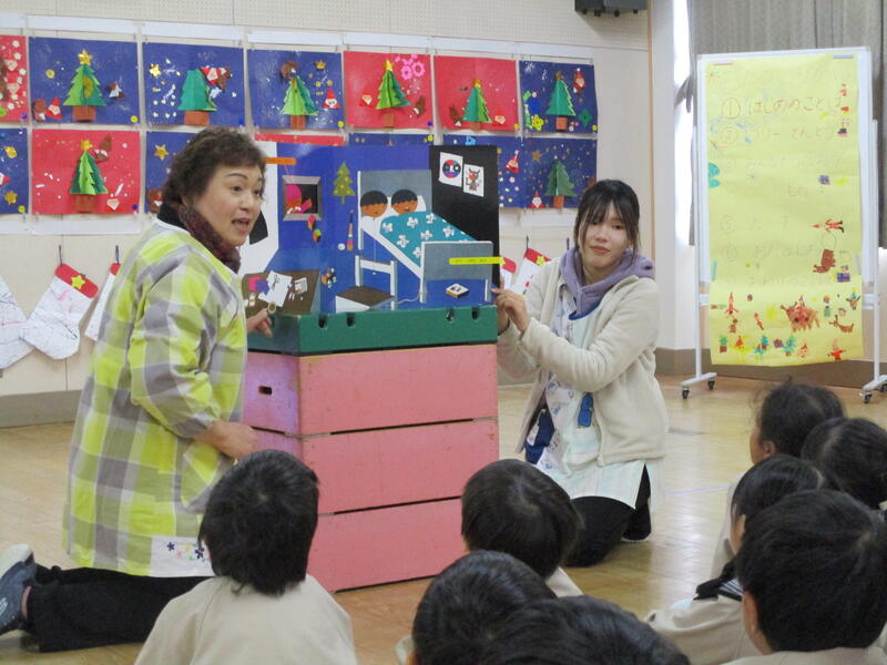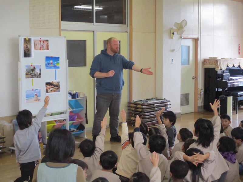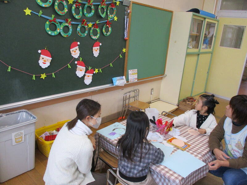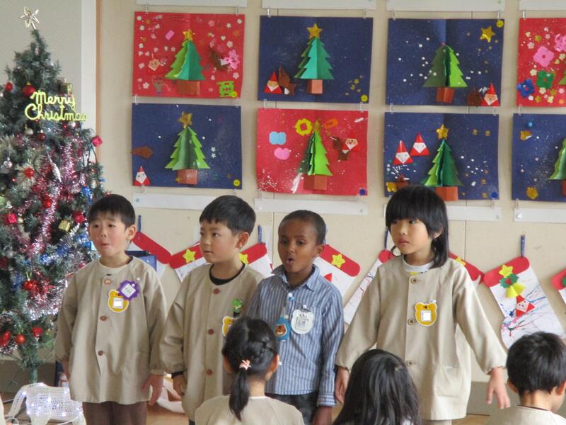 今日は、みんな大好きなALTのデイビット先生といっぱい遊びました。ニュージーランド出身のデイビット先生から、ニュージーランドのクリスマスについてお話を聞きました。クリスマスソングに合わせて踊ったり、一緒に遊んだり、お弁当を食べてたりして、楽しい時間を過ごしました。