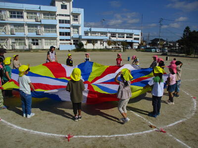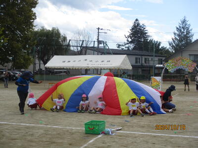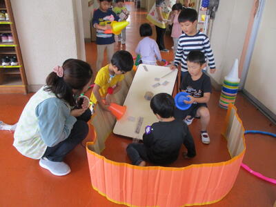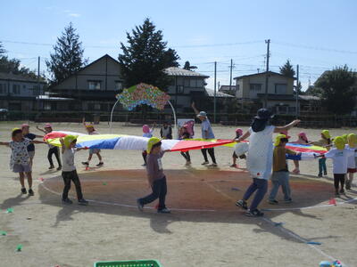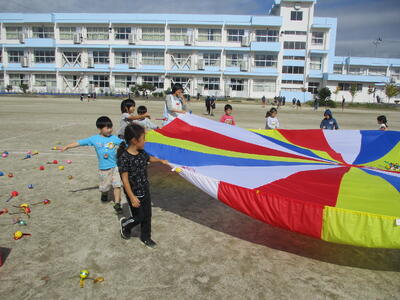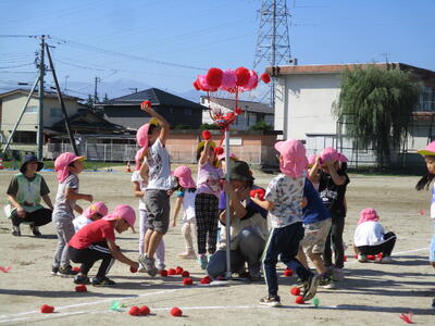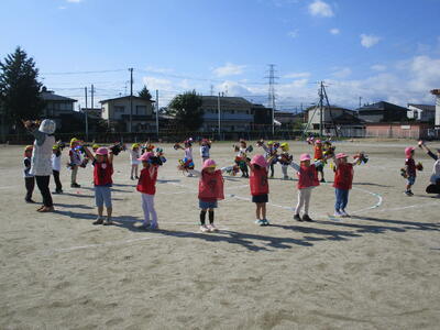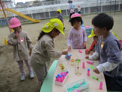 運動会に向けての練習の後、みんなで楽しく遊びました。最近は、シャボン玉遊びが流行っています。