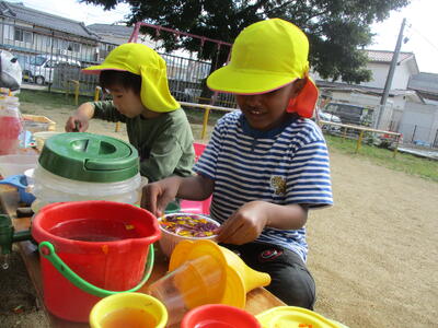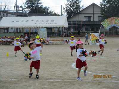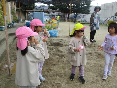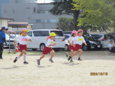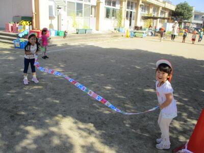 運動会が終わり、久しぶりにたっぷり遊びました。石鹸でシャボン玉を作ったり、どんぐりを拾ったりするなど、みんなで遊びました。ひまわり組は25m走にチャレンジしました。