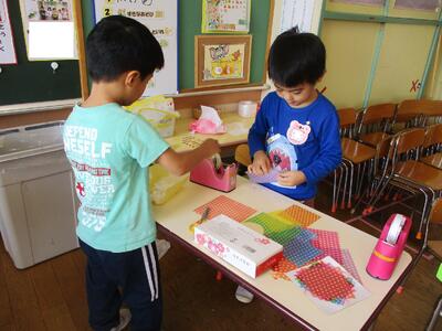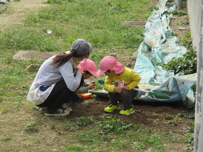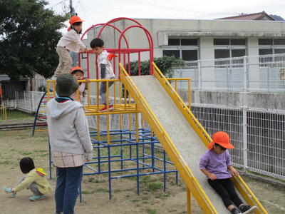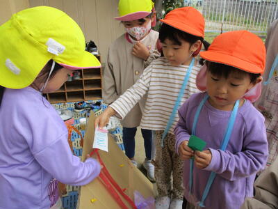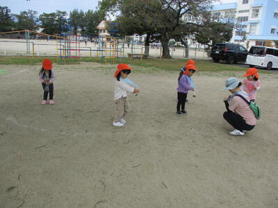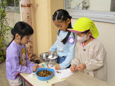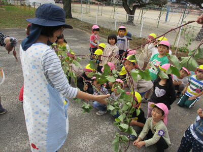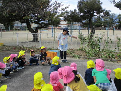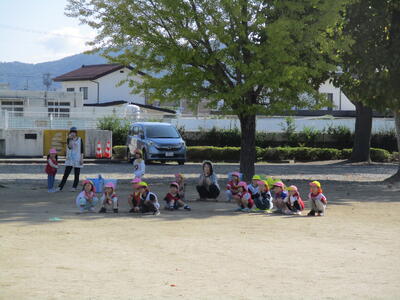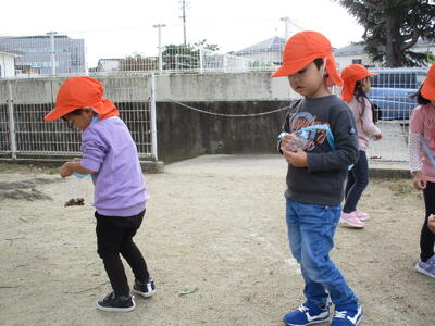 今日は、毎週火曜日に実施している「未就園児預かり保育(3歳児)」でした。どんぐりを拾ったり、ひまわり組のお姉さんと一緒に遊んだりするなど、楽しく遊びました。