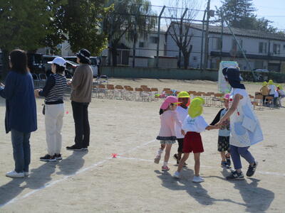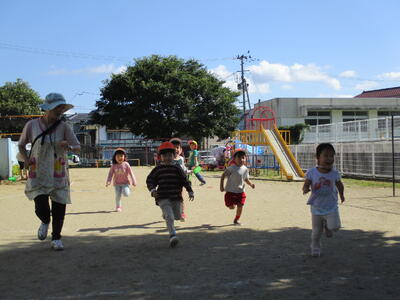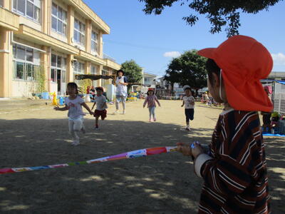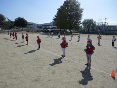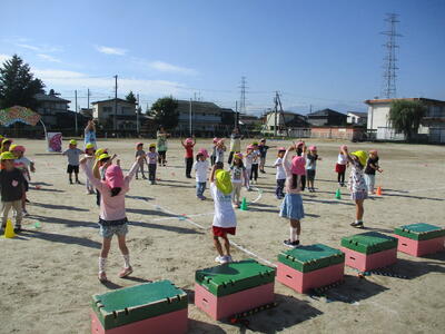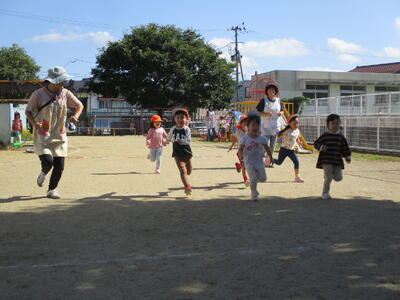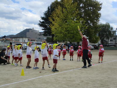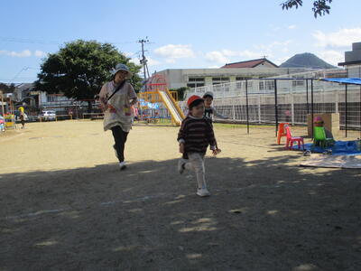 今日の未就園児預かり保育は、清水幼稚園の運動会の練習をしました。当日は、未就園児のかこっけに参加します。みんなで楽しくかけっこをして遊びました。当日が楽しみです。