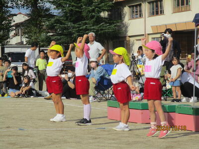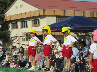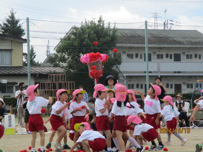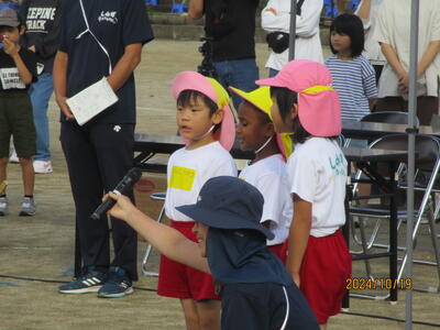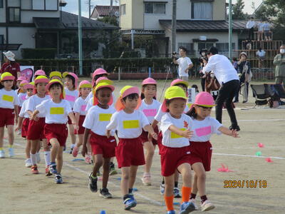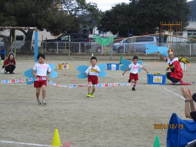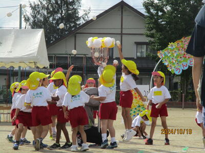 今年の運動会のテーマは「むしむしパワーでチャレンジ!」でした。昆虫が大好きな子どもたちは、「がんばりパワー」「なかよしパワー」で最後まであきらめないで頑張ることできました。応援も整列も係の仕事もがんばりました。