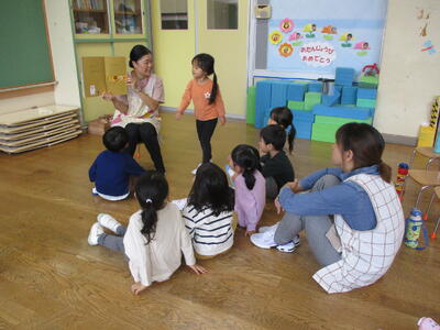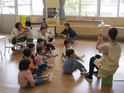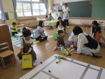 今日は、毎週火曜日に実施している「未就園児預かり保育」でした。今日から30分延長して行いました。子どもたちは、たっぷり遊べてうれしそうでした。