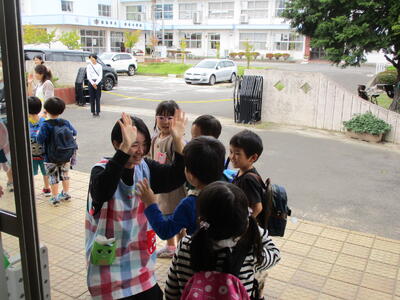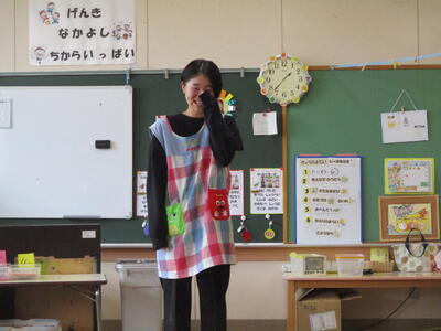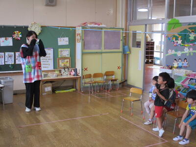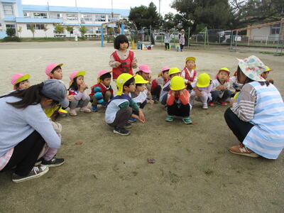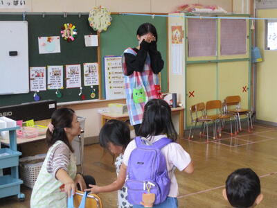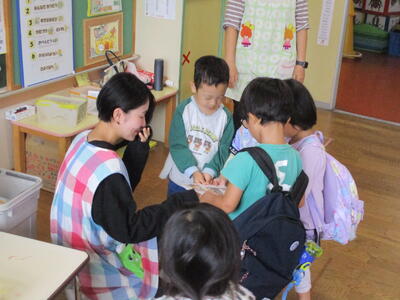 2名の教育実習生とお別れをしました。年長児学級の実習生とは1日に、年少児学級の実習生とは本日お別れをしました。年少児の学級では、「砂場で遊んでくれてありがとうございました。」「一緒に遊んで楽しかったです。」など、一人一人感謝の気持ちを伝えていました。短い間でしたが、お世話になりました。ありがとうございました。