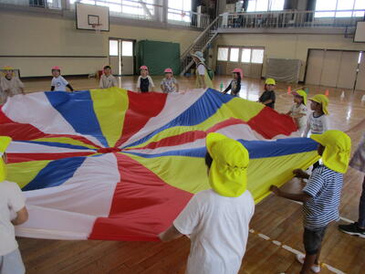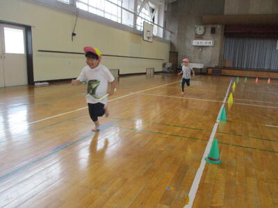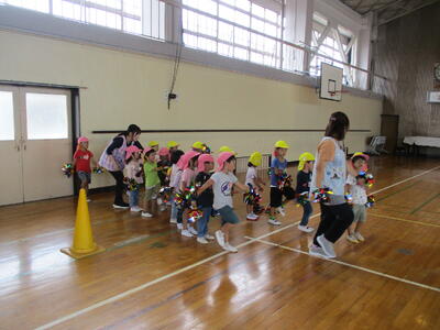 今日は清水小学校の体育館で練習しました。年少さんは初めての体育館での練習でした。