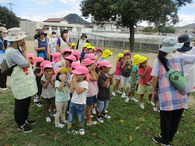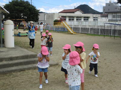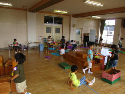 2024年9月24日 13時21分今日は、毎週火曜日に実施している「未就園児預かり保育」でした。8名全員が登園しました。帰る準備が早くできるようになりました。