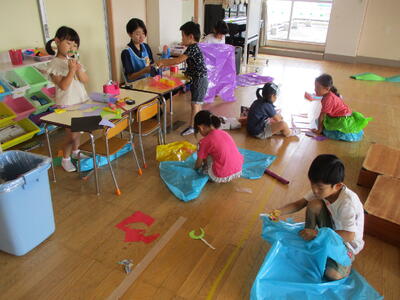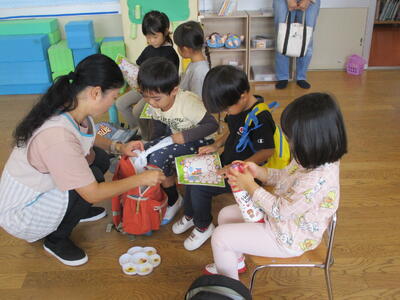 今日は、毎週火曜日に実施している「未就園児預かり保育」でした。8名全員が登園しました。帰る準備が早くできるようになりました。