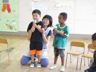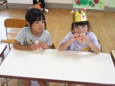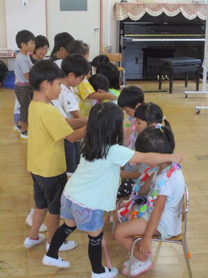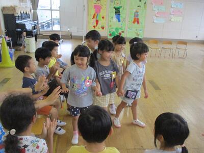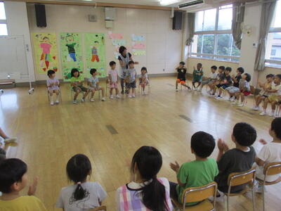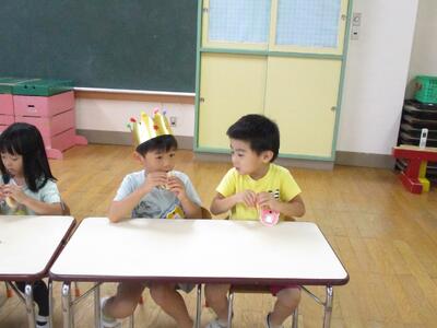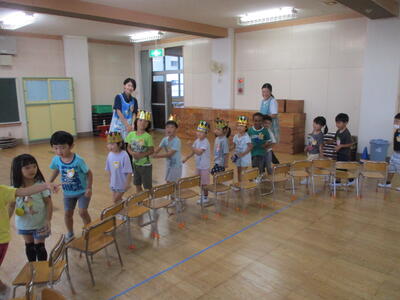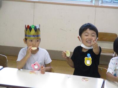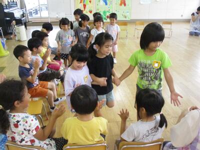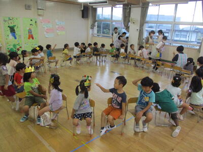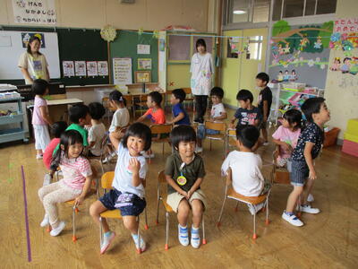 8・9月の誕生会を行いました。みんなで歌を歌ったり、いす取りゲームをしたりするなど、楽しい時間を過ごしました。