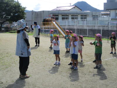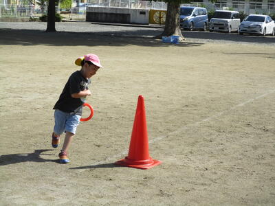 運動会に向けての練習がスタートしました。ひまわり組は、清水小学校の校庭で折り返しリレーの練習をしました。